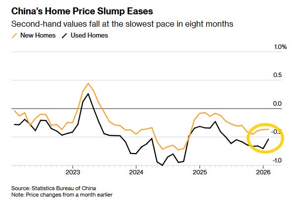 BBG - China’s existing home prices fell at a slower pace in January, a rare positive sign during the prolonged property crisis, while new home values declined the same amount as December but that was the joint-least since August.