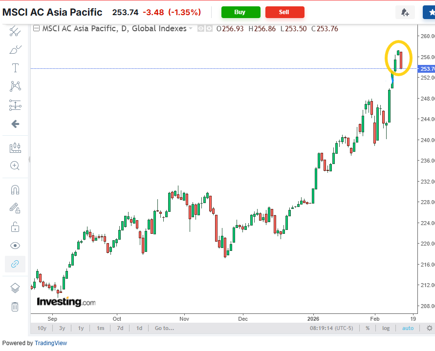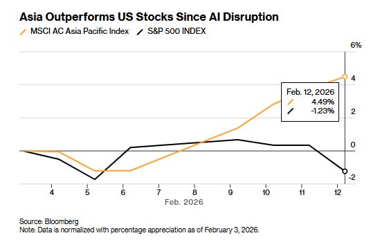 Coming into Friday though the MSCI Asia Pacific Index had risen more than 12% in 2026, in contrast the S&P 500 is down 0.2% for the year, while the technology-heavy Nasdaq 100 gauge has lost around 2% with one of the largest divergences on Thursday when Asian stocks gained +0.75% while the SPX lost around -1.6%.