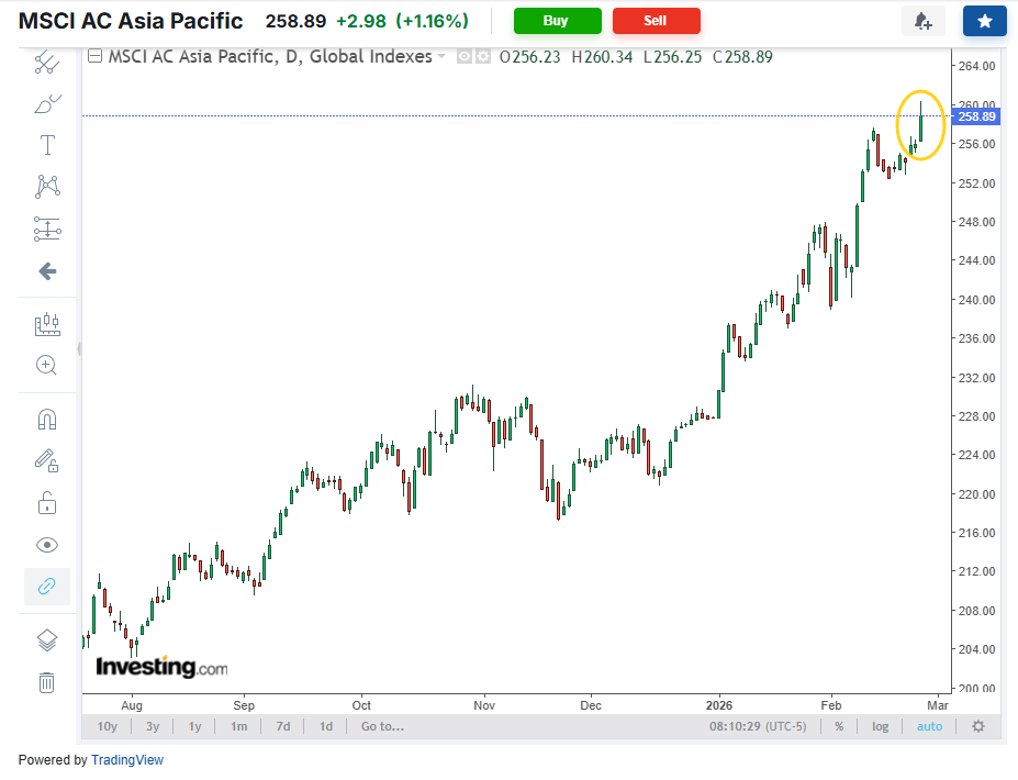 The MSCI Asia Pacific Index jumped +1.2% Wednesday to new record highs as it works on a 10th weekly gain in 11 weeks (and 12th in 14). It is also on track for its 9th gain in the last 10 months.