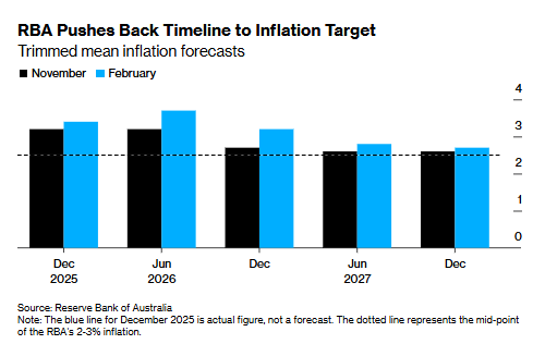 “Stronger-than-expected January inflation will keep the RBA on edge. But a rate hike at the March 17 meeting remains unlikely — the data don’t threaten the RBA’s February outlook.” — James McIntyre, BBG economist.