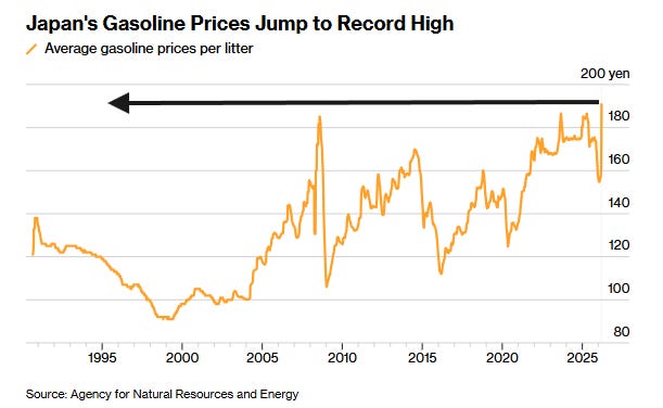 BBG - Japan’s gasoline prices surged to a record high this week, as ripple effects from the US-Israeli conflict with Iran reach Japan.