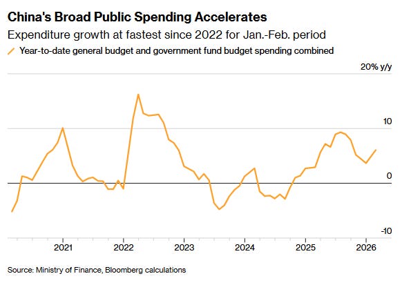 BBG - China’s government spending got off to its fastest start to any year since 2022, likely an effort by authorities to fortify the economy in the face of rising external uncertainty.