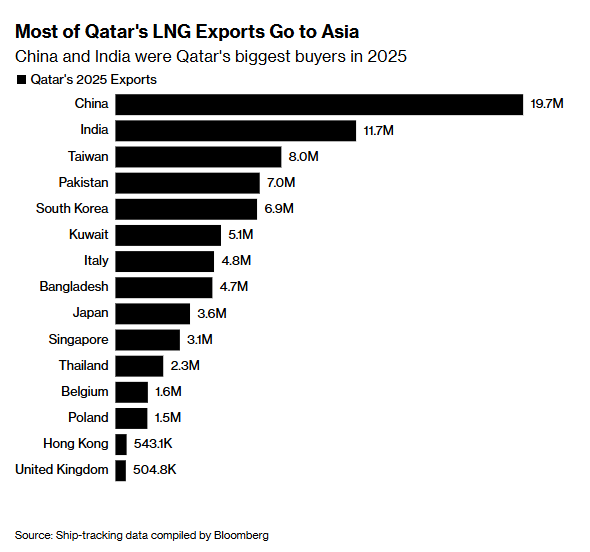 Nations from South Korea to Indonesia and Bangladesh are prioritizing coal as a power source, as the intensifying conflict upends gas supplies from a key exporting region. Among the worst hit countries is Qatar, home to the world’s biggest LNG export facility that Asian customers rely on.