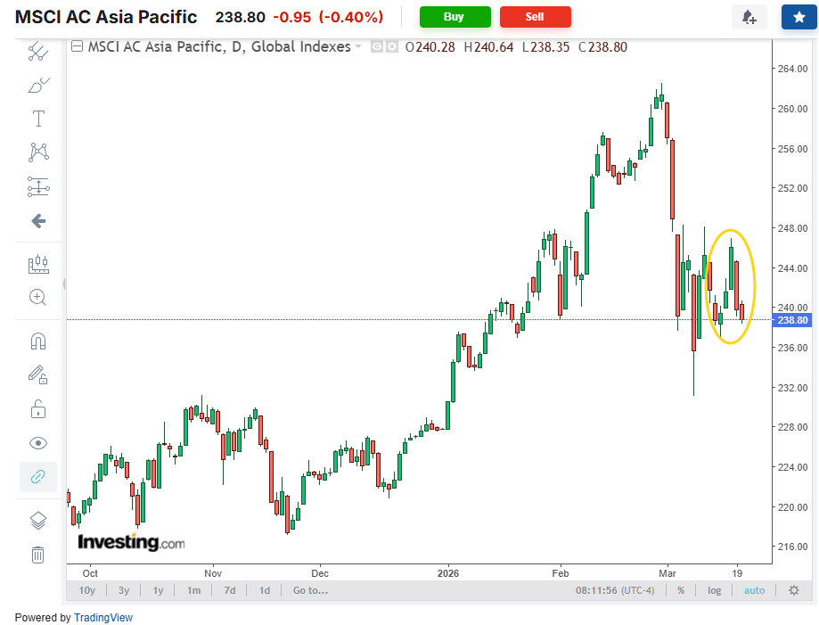 The MSCI Asia Pacific Index was lower -0.4% Friday to end the week little changed but remaining on track for its first down month in the last 11.