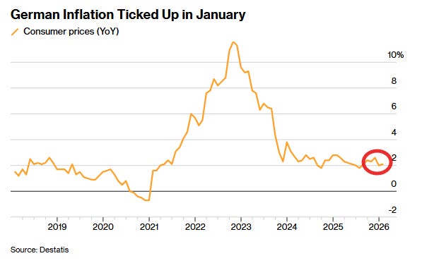 But Germany’s CPI accelerated y/y to 2.1% up from 2% in December. Analysts had predicted an unchanged reading.