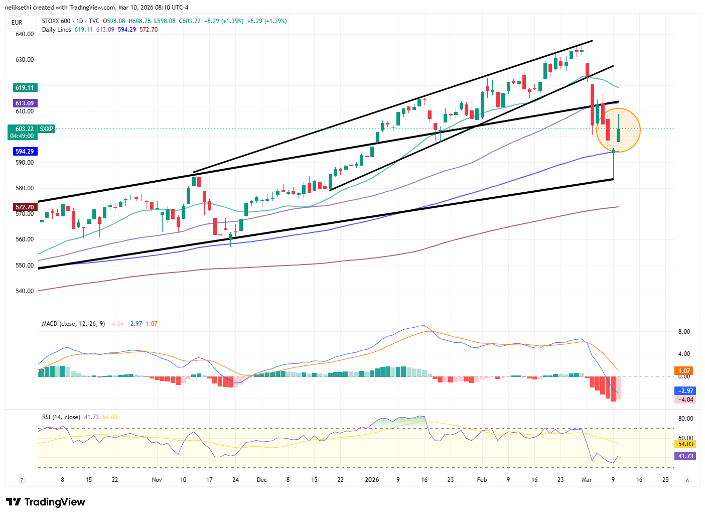 Europe’s benchmark STOXX 600 as of 8.00 am ET continued its rebound after its decline at one point Monday reached -8% this month, currently +1.4%, and +3.4% off those Monday lows. Still it’s on track for its first monthly loss in 10 months.