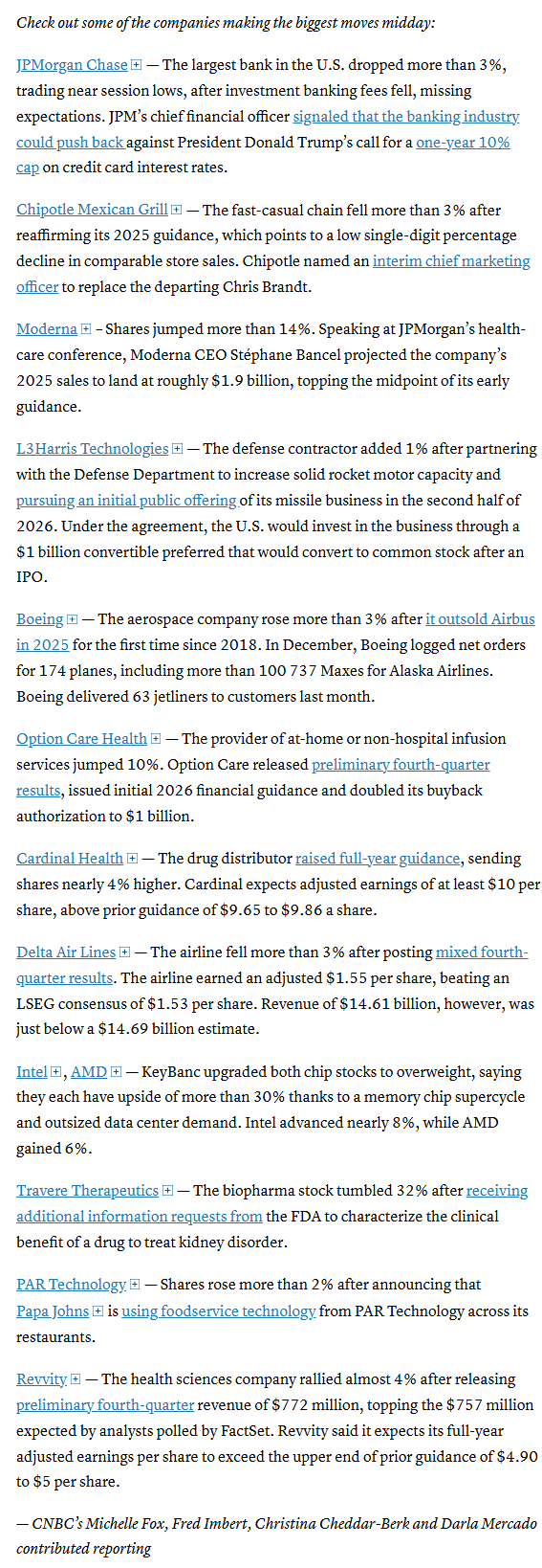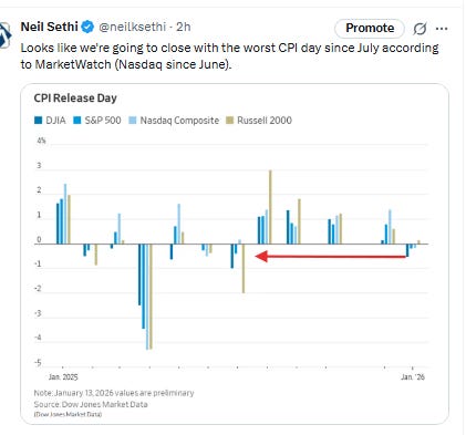 “If price pressures remain subdued in the coming months as data noise clears, it could open the door for another rate cut in the Spring,” said Angelo Kourkafas at Edward Jones. “With CPI out of the way, investors will now turn their attention to corporate earnings for signals on where markets may head next.”