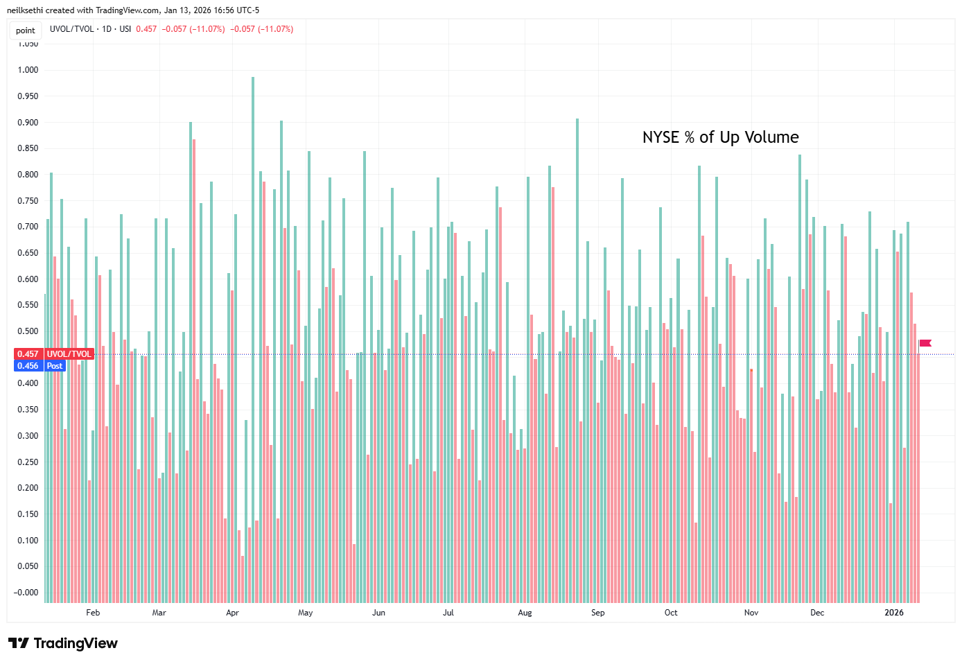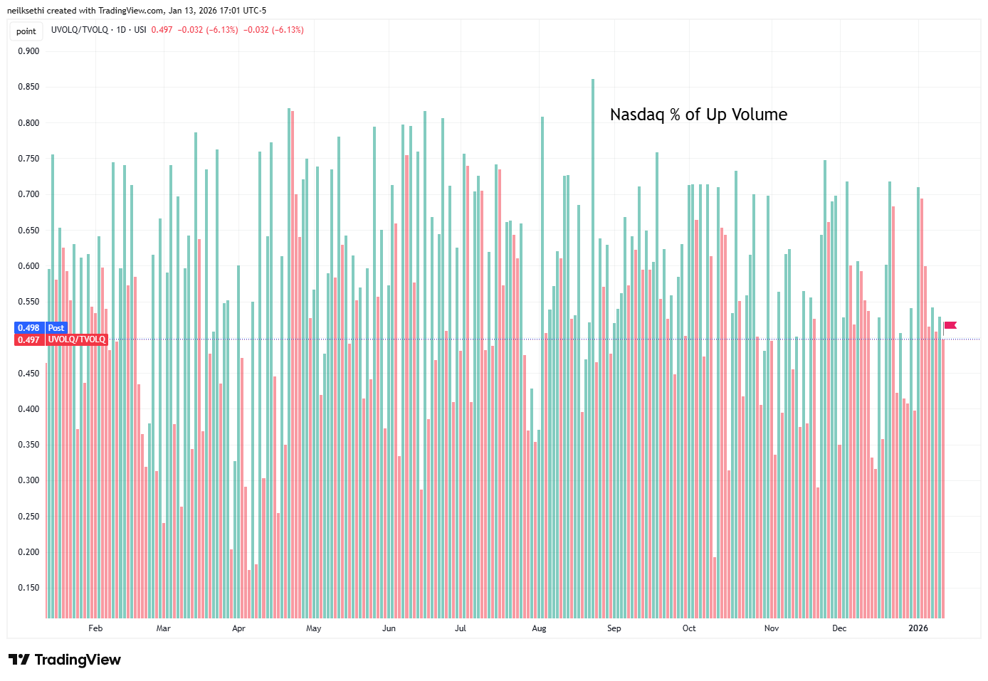Positive issues (percent of stocks trading higher for the day), which are not inflated by high speculative volumes, saw some divergence from positive volume on the Nasdaq as a result at 42.0% while the NYSE was 52.0%.