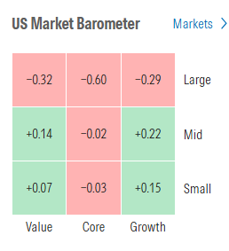 Morningstar style box an interesting “T” shape with large caps and core styles lower, everything else higher, but all small changes.