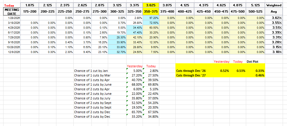 The dot plot as a reminder has 33bps for the average dot for 2026.
