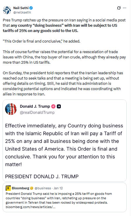Meanwhile, oil prices jumped after Trump canceled all meetings with Iran — a top OPEC producer — and told protesters that “help is on its way.” This comes just a day after he said that any country doing business with Iran will be subjected to a 25% tariff “on any and all business being done” with the U.S