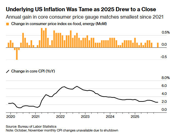 “Today’s softer-than-expected core CPI print is unlikely to alter the Fed’s calculus for the January meeting,” said Seema Shah at Principal Asset Management. “With unemployment still low, growth running above trend, fiscal stimulus providing an offset, and inflation remaining above target, the Fed can comfortably keep rates on hold this month and likely over the next few meetings.”