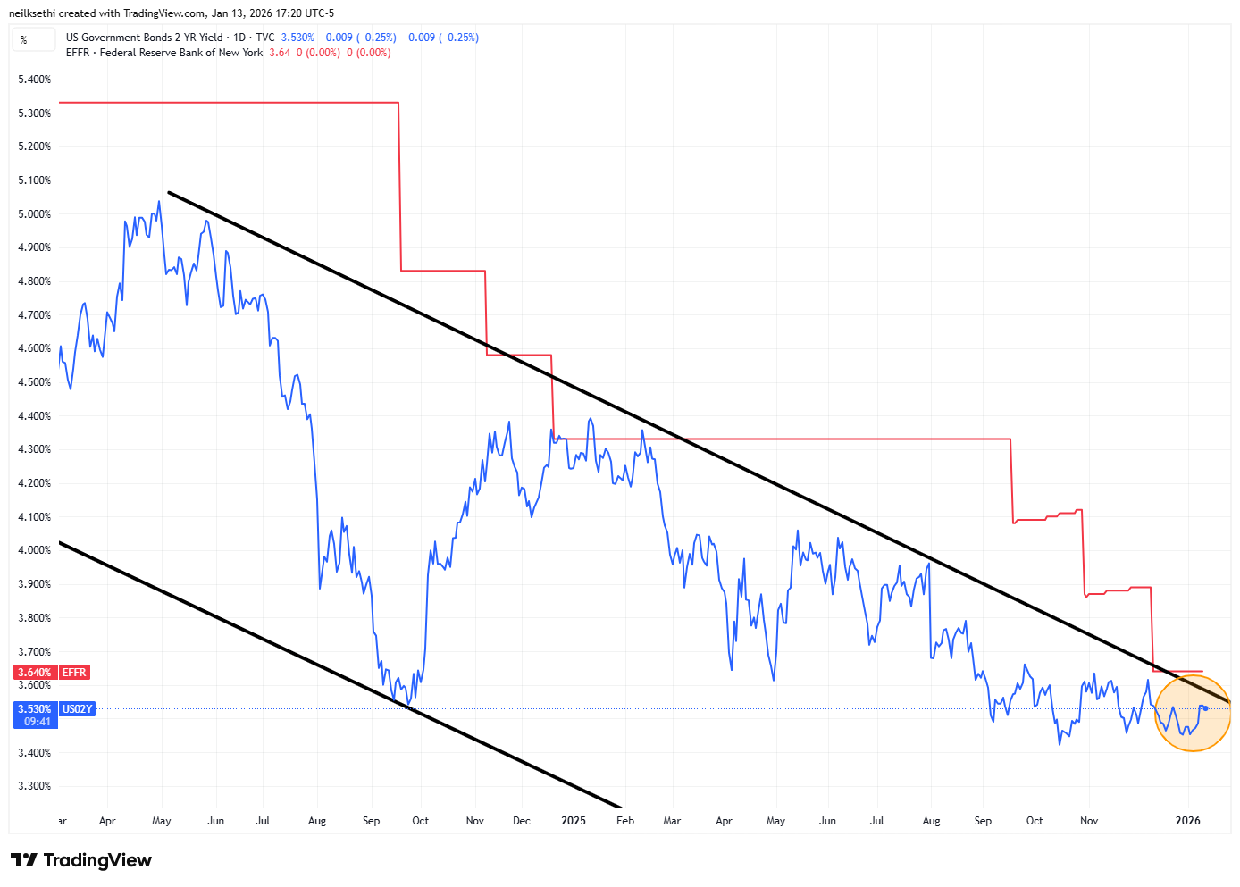 This seems like a fairly rich yield at these levels unless we really aren’t going to get any more rate cuts (then it’s a bit expensive (i.e., yield should be higher)). That said I just don’t know that I want to buy 2-years at what is basically the 1-month yield.