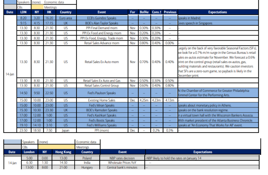 In EM, highlights are a policy decision in Poland, Hungary minutes, China loan growth, and India wholesale prices.