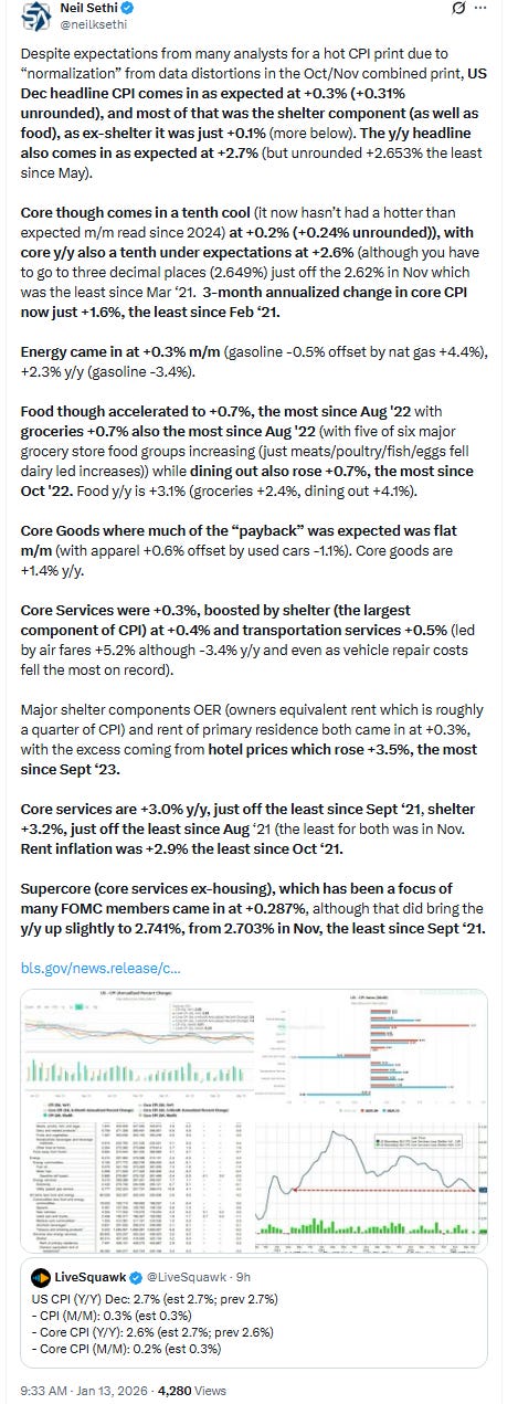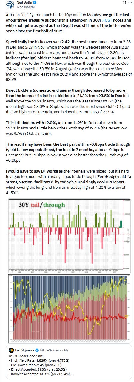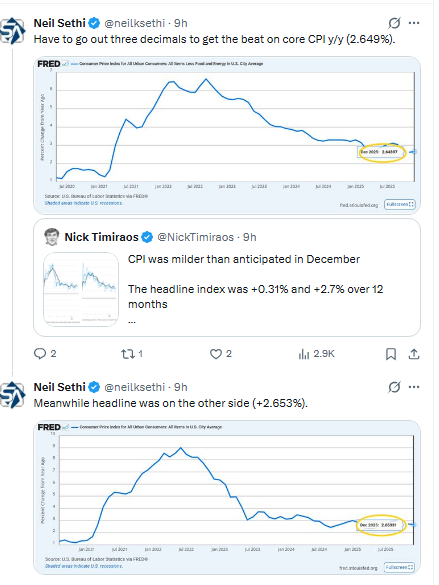 Lots more Fed speakers although most of them we have heard from in the past week. Still will be interesting to get their takes after CPI. We know what Gov Miran is going to say, and I doubt NY Fed Pres Williams will change his position (rates are “in a good position”) from less than 48 hours earlier, but if he does it would be market moving. I would imagine Philadelphia Fed Pres Paulson (2026 voter, not listed below speaks at 9.50am ET) will continue to be relatively dovish. We haven’t heard from Chicago Fed Pres Goolsbee in a while (not a 2026 voter though). We’ll also get appearances from Minneapolis Fed Pres Kashkari (2026 voter) and outgoing Atlanta Fed Pres Bostic.