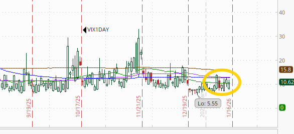 And like the VIX and VVIX, the 1-Day VIX fell back a little now at 10.6. The current reading implies a ~0.66% move in the SPX next session.