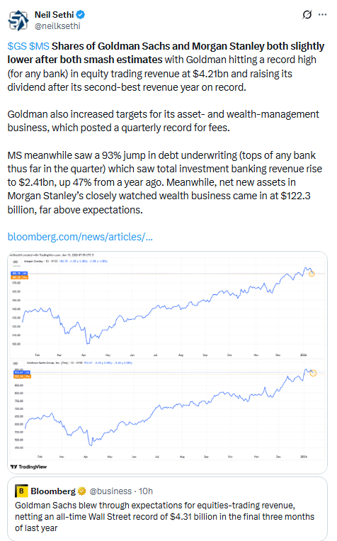 “A solid earnings showing from Goldman Sachs and Morgan Stanley won’t erase sector angst overnight, but paired with Thursday’s improving risk tone, it strengthens the case that recent bank weakness reflects policy jitters rather than a deterioration in core earnings power, leaving room for financials to end the week on firmer footing if the broader backdrop cooperates.” — Brendan Fagan, FX Strategist, Markets Live