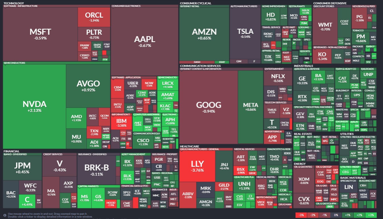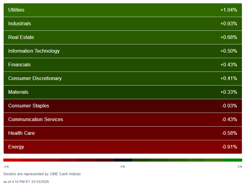 Chip plays led the market after Taiwan Semiconductor delivered another record quarter, saying it expects to boost capital spending in 2026 to between $52 billion and $56 billion — an outlook signaling confidence in the artificial intelligence buildout from the world’s largest contract chipmaker. The stock jumped more than 6%. The VanEck Semiconductor ETF (SMH) climbed 3%, with Nvidia and Micron Technology adding more than 2% each.