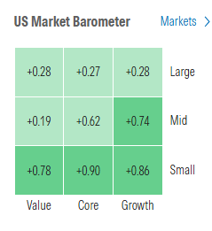 Morningstar style box clearly showed the weakness in the larger growth stocks.