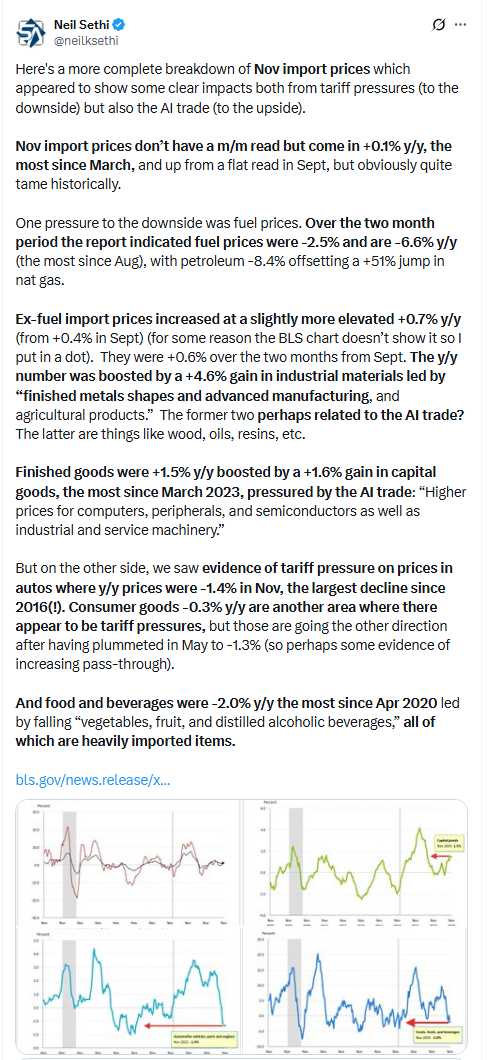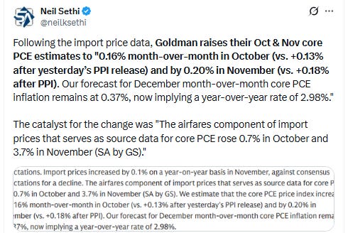 We’ll wrap up our last Fed speakers before the blackout starts Friday night with Gov’s Bowman and Jefferson. Both are interesting. Vice-Chair Jefferson (who along with Powell and Williams form the “core” of the committee) doesn’t speak much, but I would be shocked if he didn’t reiterate what Williams said this week about policy being “in a good place,” etc. Gov Bowman I was interested in hearing last week to see if she has reigned in her dovishness after being removed from consideration as Fed Chair, but she didn’t touch on monetary policy, maybe tomorrow.
