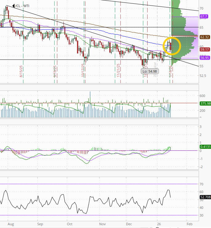 Unfortunately for crude bulls that’s exactly what we got “de-escalation with Iran” and WTI predictably fell back, although it finished a little off the lows after finding support at the 50-DMA. We’ll see if that can continue to hold.