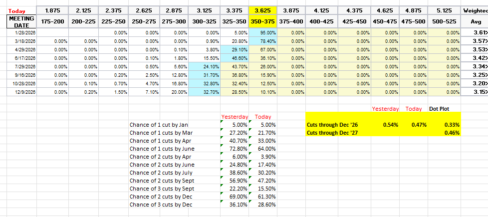 The dot plot as a reminder has 33bps for the average dot for 2026.