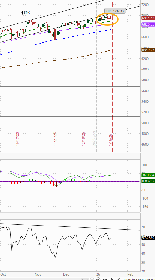 The SPX edged up but not quite to an ATH. The daily MACD and RSI are both neutral with a negative divergence but at least had made new local highs.