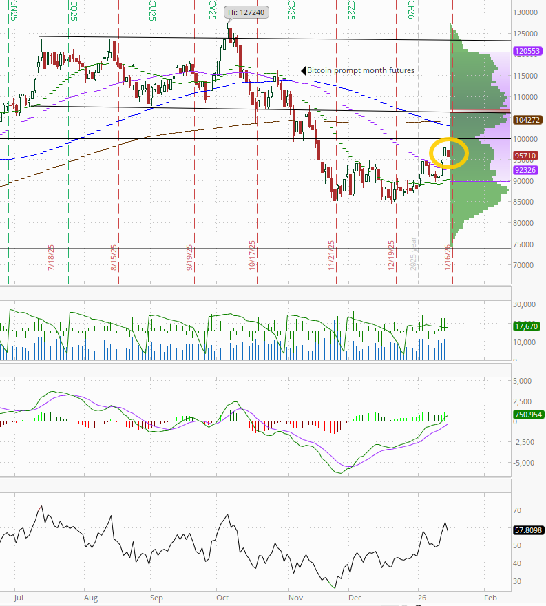 I asked Tues if Bitcoin futures were “perhaps ready for a run to $100k?” after they made it through the 50-DMA (the first close over the 50-DMA since October), and they got halfway there Wed up +3.6% and clearing the $95k level, but Thurs couldn’t get the rest of the way there.