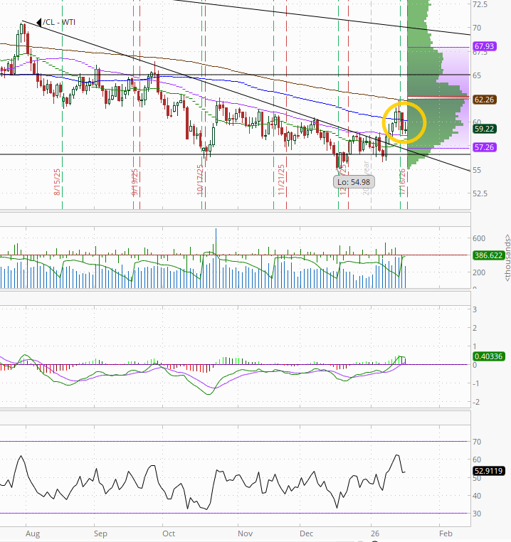 After dropping back Thurs following the de-escalation with Iran, WTI futures started higher on some more hawkish language out of the White House but gave that back by the end of the session to finish little changed just above support at the 50-DMA. We’ll see if that can continue to hold.