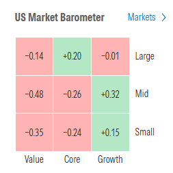 Morningstar style box showed relative weakness in most styles although changes were modest across the box.
