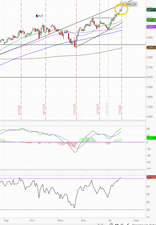 For the week, it was a bigger gap with the RUT ending up over +2% while the other indices were modestly lower. As always, more details on performance below.