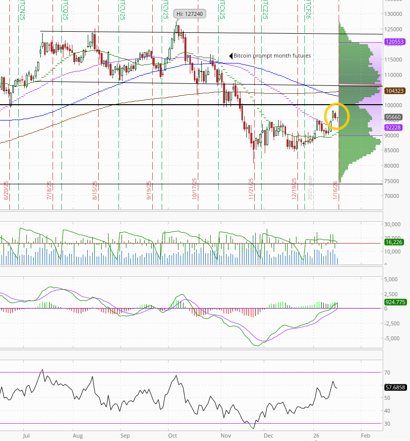 Bitcoin futures continue to disappoint not able to extend to the $100k level again.