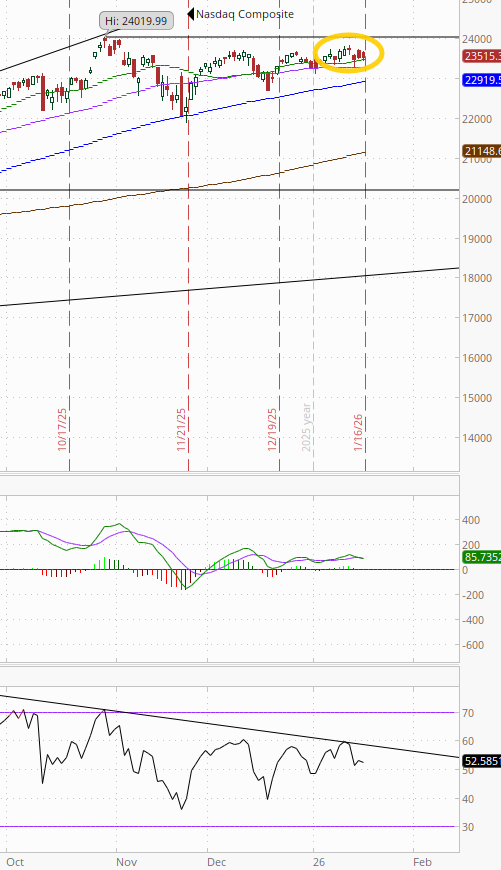 The market-cap weighted S&P 500 (SPX) was -0.1%, the equal weighted S&P 500 index (SPXEW) -0.3%, Nasdaq Composite -0.1% (and the top 100 Nasdaq stocks (NDX) -0.1%), the SOXX semiconductor index +1.2%, and the Russell 2000 (RUT) +0.1%.