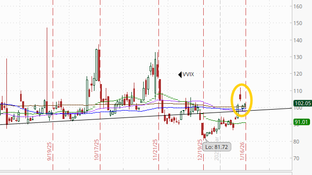 The VVIX (VIX of the VIX) edged a touch higher to 102.1.
