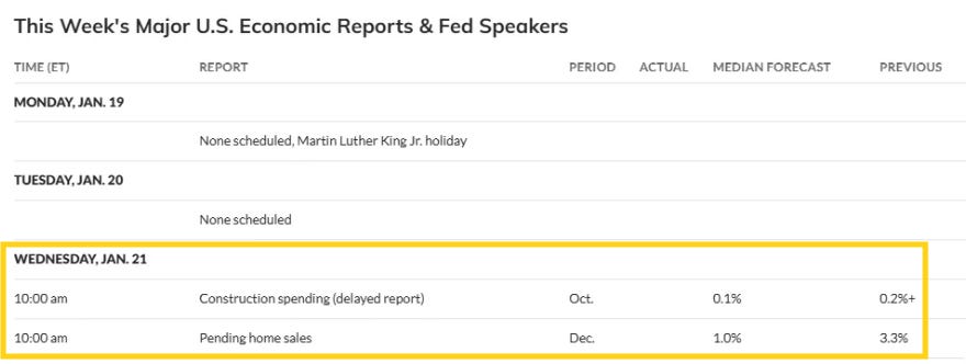 After no data (except for the ADP weekly report) Tuesday, we’ll get some Wednesday in a delayed Oct construction spending report, Dec pending home sales, and weekly mortgage applications and EIA petroleum inventories.