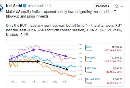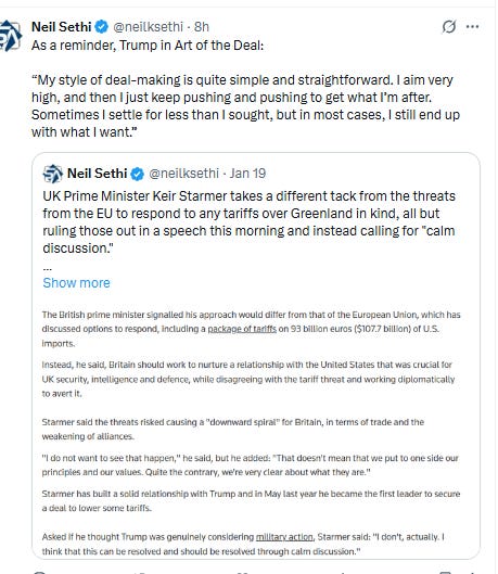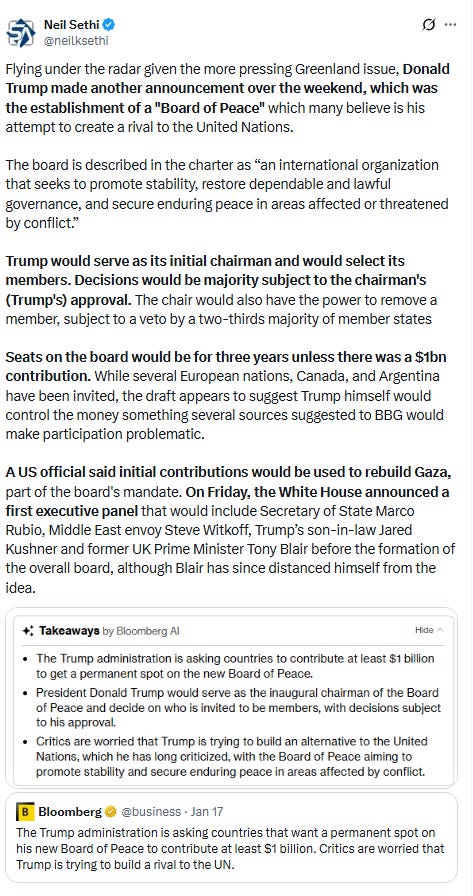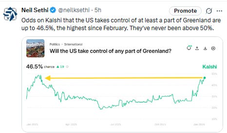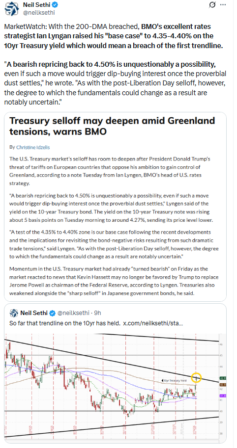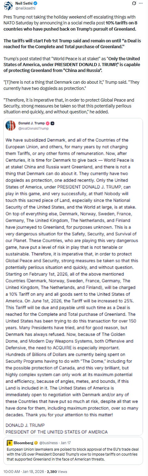 “The blow-back from the Administration’s policies towards Greenland is significant,” said Matt Maley at Miller Tabak. “It is raising questions about the future of our relationships in Europe - and even the future of NATO - although that’s not a major concern yet by any means. However, the political and geopolitical landscapes are still becoming more volatile very quickly.”