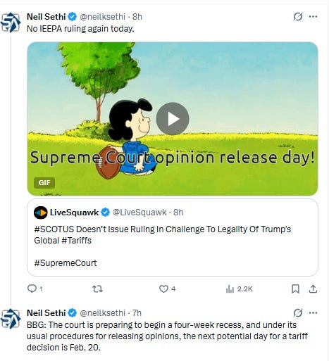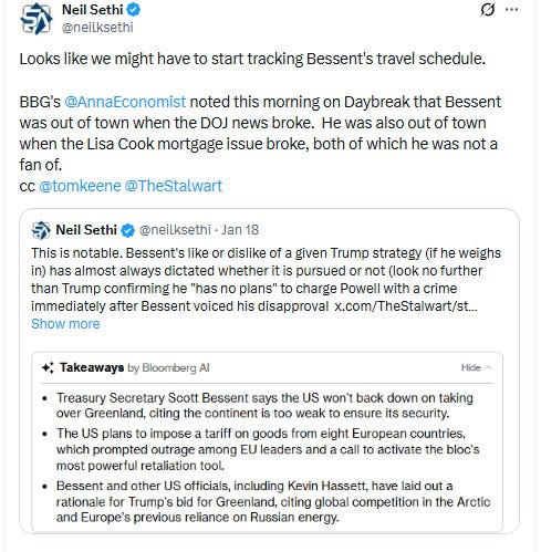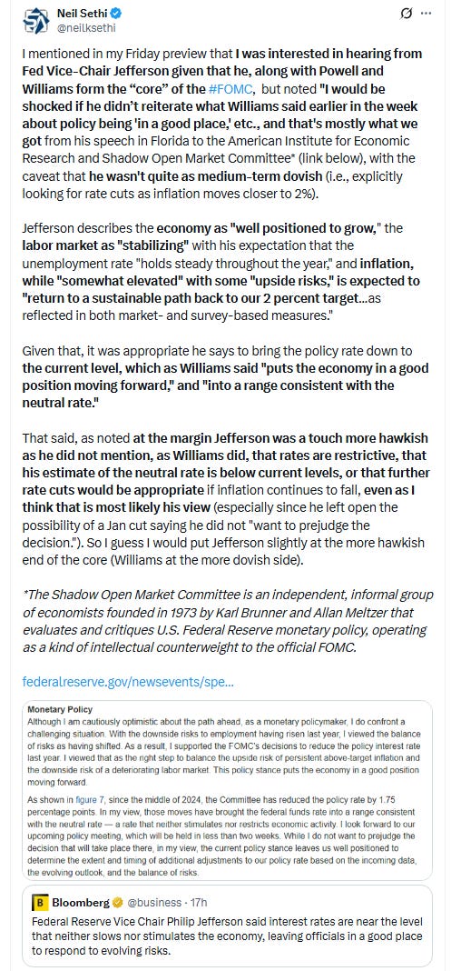 And it appears I had the wrong day (from more than one reputable source) on the Lisa Cook oral arguments which will actually be Wednesday. As I said yesterday: This is an extremely consequential case, as a decision against Cook (she is suing to block her “for cause” (i.e., for misconduct) removal as a Governor by Pres Trump on the basis of a not uncommon error in a mortgage in her name that predates her time at the Fed) would open the door wide to pretextual removal claims by a President giving wide powers to remake the Board.