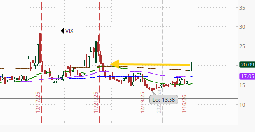 VIX pushed over 20 for the first time since Nov at 20.1. The current level is consistent w/~1.25% average daily moves in the SPX over the next 30 days.