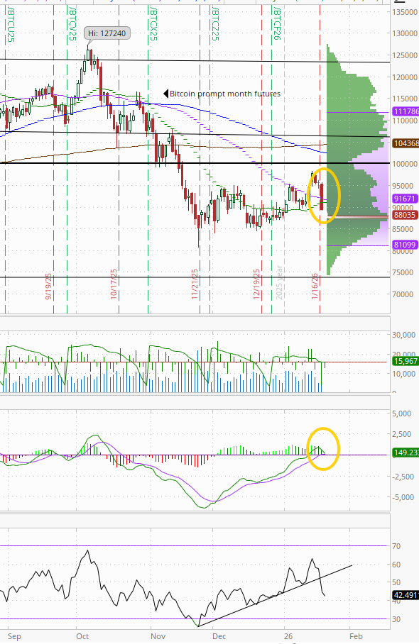 Bitcoin futures joined the risk-off selloff dropping -6.4%, back under the 50-DMAand $90k level.