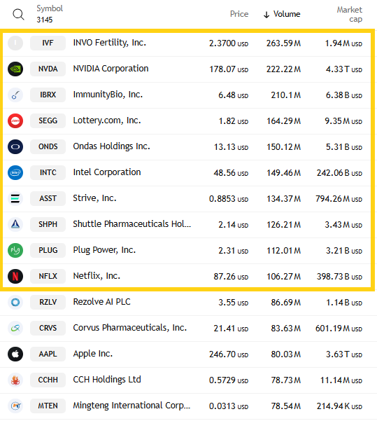 Three of those 8 up 3% or more were >$100bn in market cap (after 4 Fri, 11 Thurs, 4 Wed) in NEM, BSX, INTC (in descending order of percentage gains).