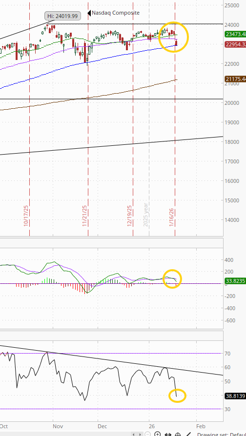 Positive issues (percent of stocks trading higher for the day), which are not inflated by high speculative volumes, still did reflect it today with the Nasdaq notably lower than positive volume at 26%, while the NYSE was 21%.