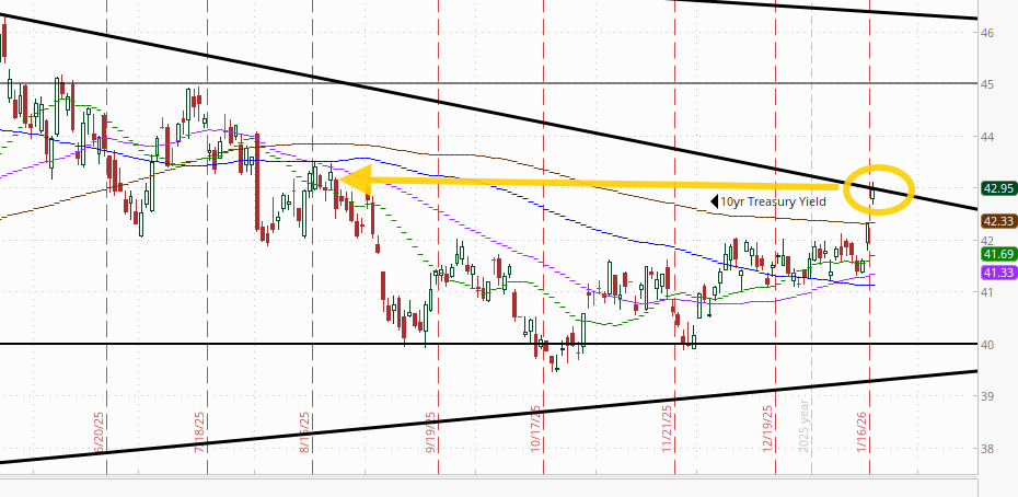 “Greenland and tariffs have become the primary conversation at Davos and headlines from the event are serving as a reminder of the uncertainties associated with Trump 2.0 and the White House’s agenda,” Ian Lyngen at BMO Capital Markets said.