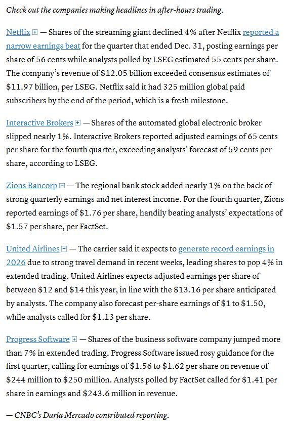 In late hours, Netflix Inc. delivered solid results, but issued a cautious forecast that saw shares fall. United Airlines Holdings Inc. beat earnings estimates.
