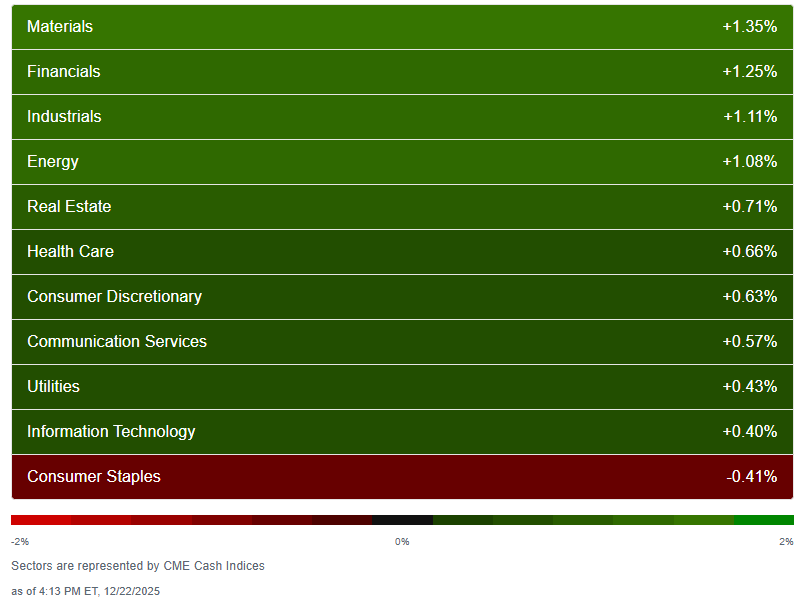 But losses were mild. Staples finished in last place for a second session (and down for the third session -0.4% (matching Mon, -0.5% Fri). No other sector down over -0.2%.