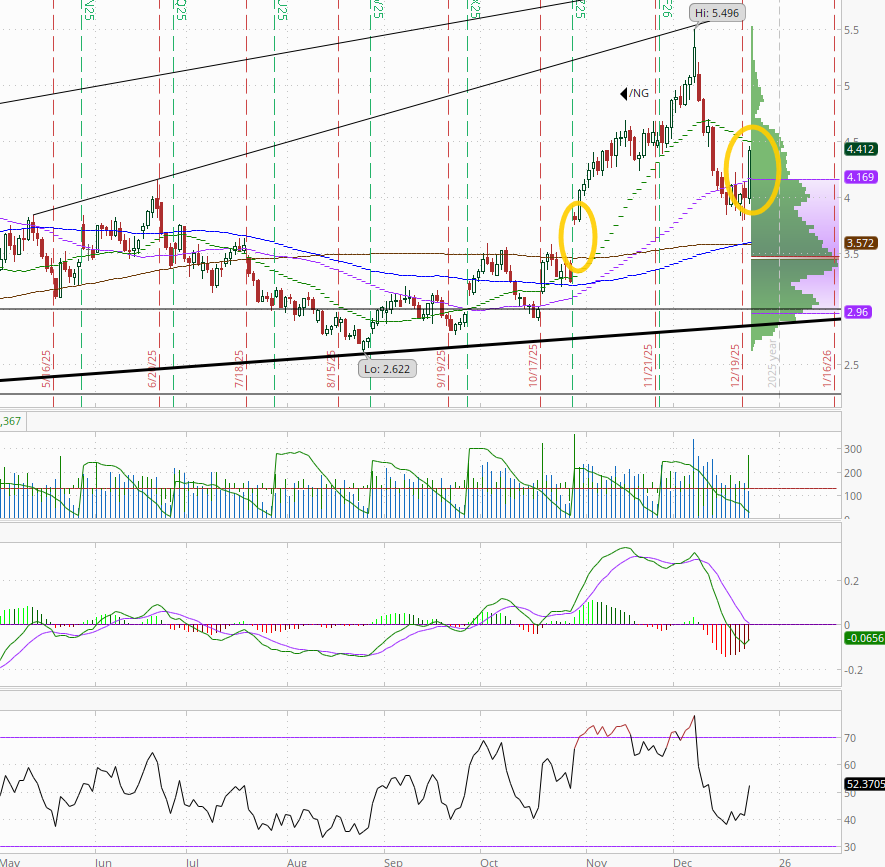 Natgas futures (/NG) jumped over +10% Tues, the largest one-day gain since Oct 30th (when it rolled contract months), on colder weather model updates. I did say on Thurs they seemed to be trying to carve out a bottom, but I certainly wasn’t expecting that.