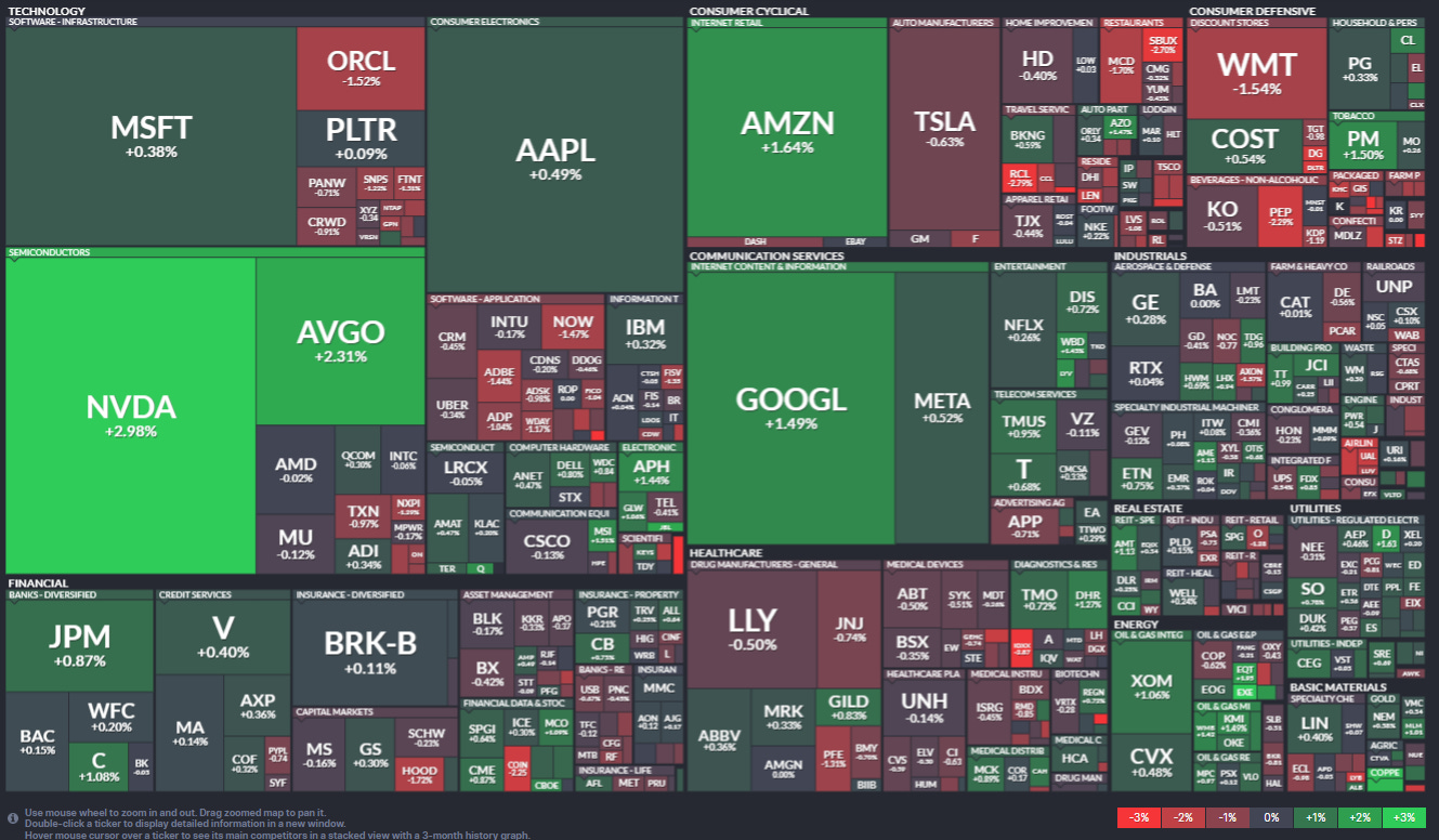 Gains in tech giants Nvidia and Broadcom, which rose around 3% and more than 2%, respectively, lifted the index.