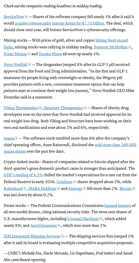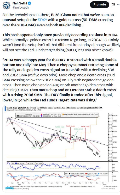 Elsewhere, bond yields rose a bit at the short end with the Fed rate cuts falling, but the dollar fell back to the least since early Oct. Also lower was bitcoin, while gold (to another record), crude, copper, and natgas all saw solid advances.