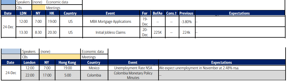 “Equity markets seem to be entering a lackluster period until year end,“ said Roberto Scholtes, head of strategy at Singular Bank. “Given the uneven performance by sectors and stocks this year, there might be some rotation from big gainers to laggards that could continue in the first days of January.”