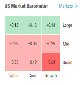 Morningstar style box showed the clear preference for larger shares Tuesday.