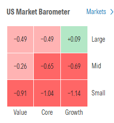 Morningstar style box saw just large cap growth escape the red.